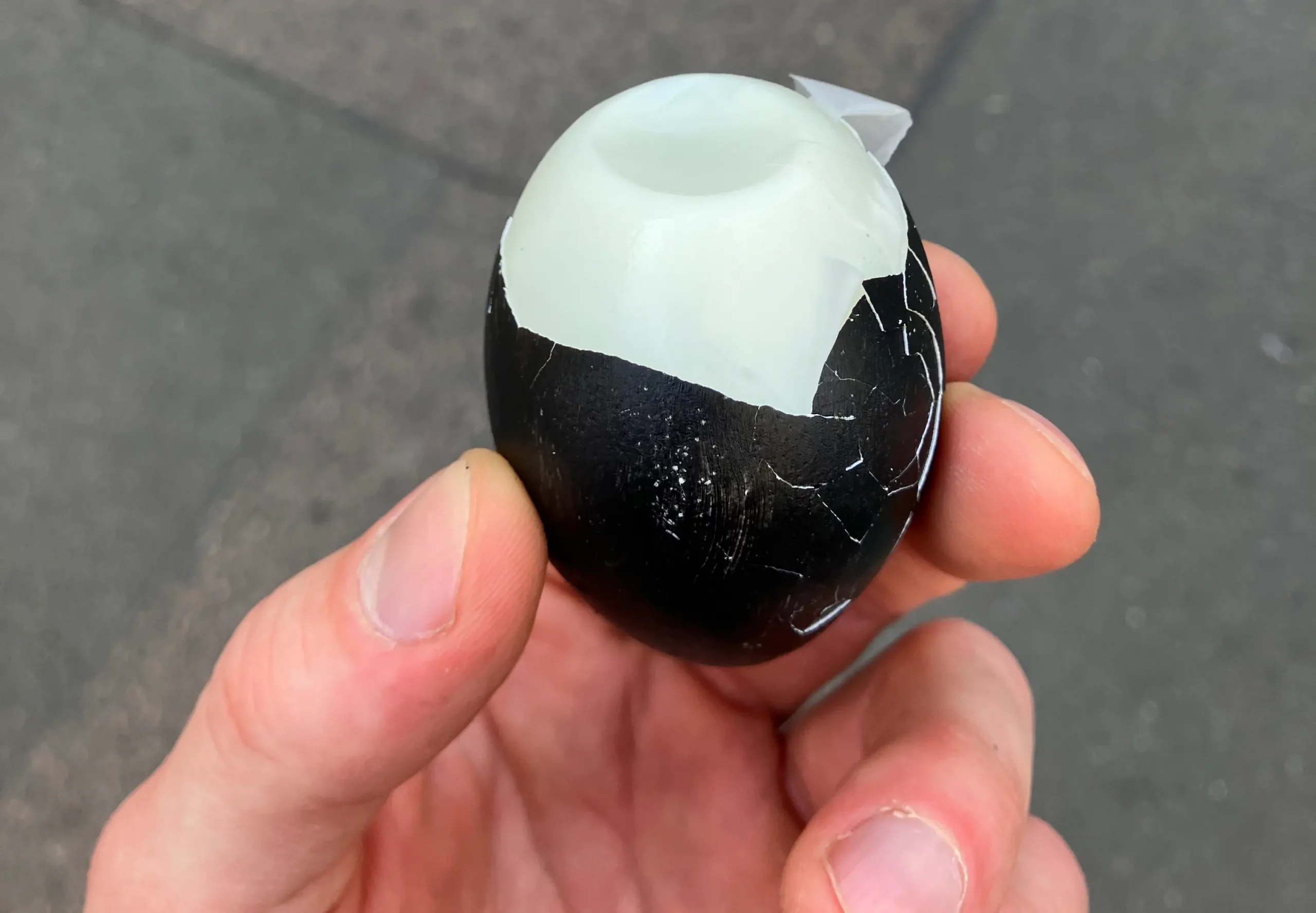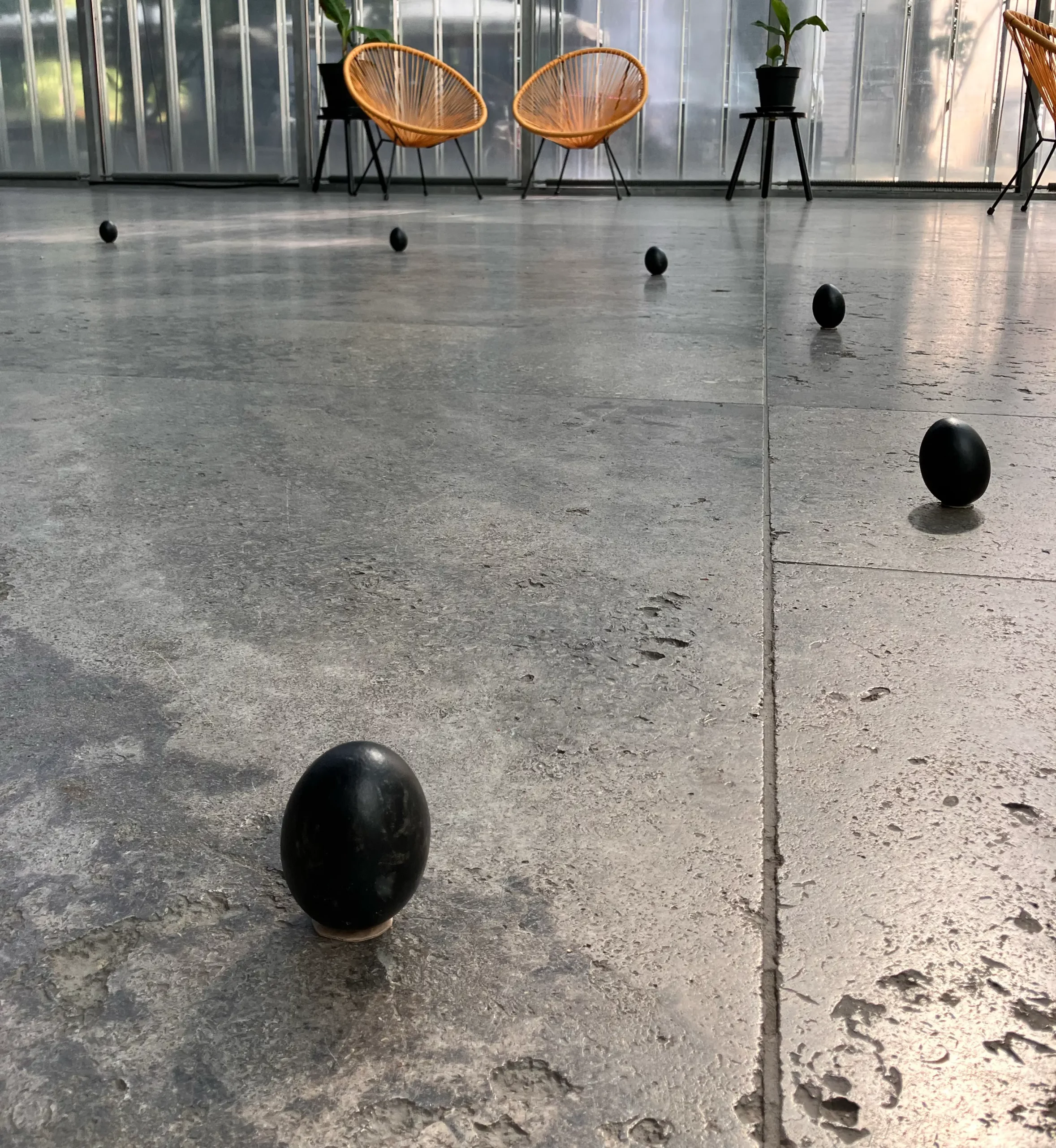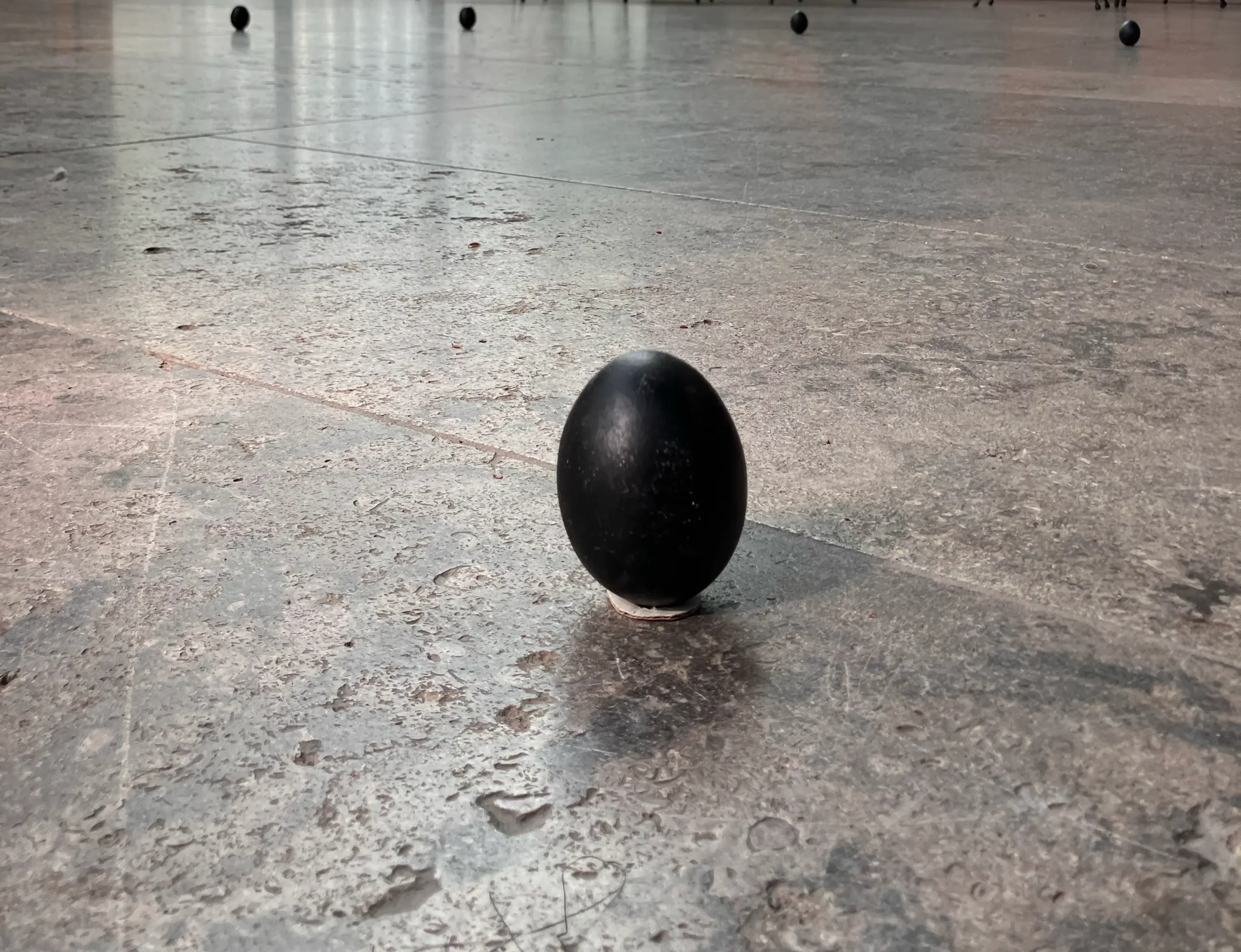 In contrast to the material-neutral minimal aesthetic, the objects are semantically overdetermined. The black egg refers to archetypal ideas of birth, transformation and closure - a central motif in alchemical and hermetic imagery, especially in the Nigredo phase: the darkness before transmutation.