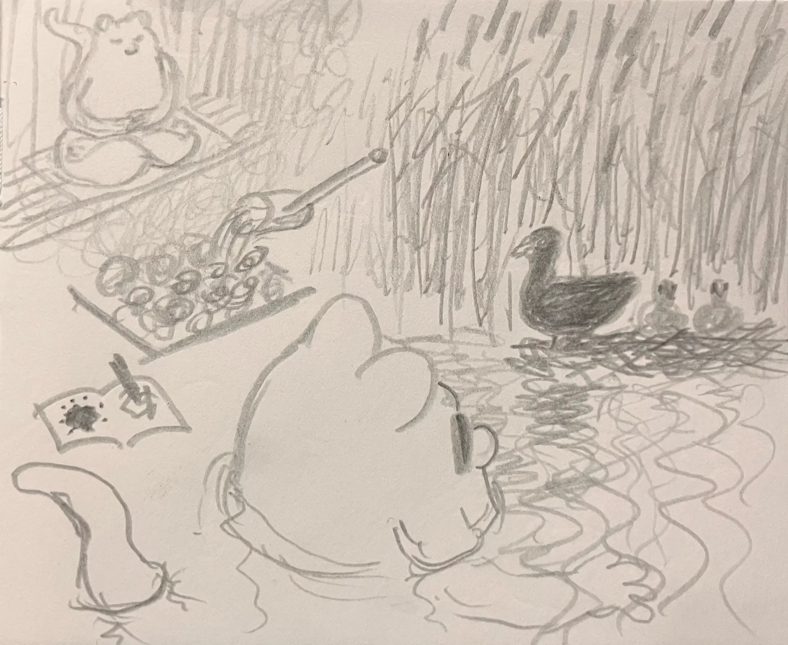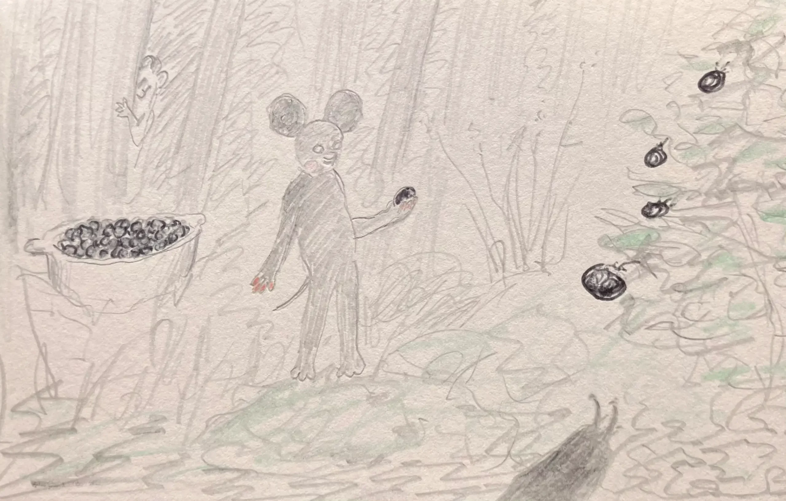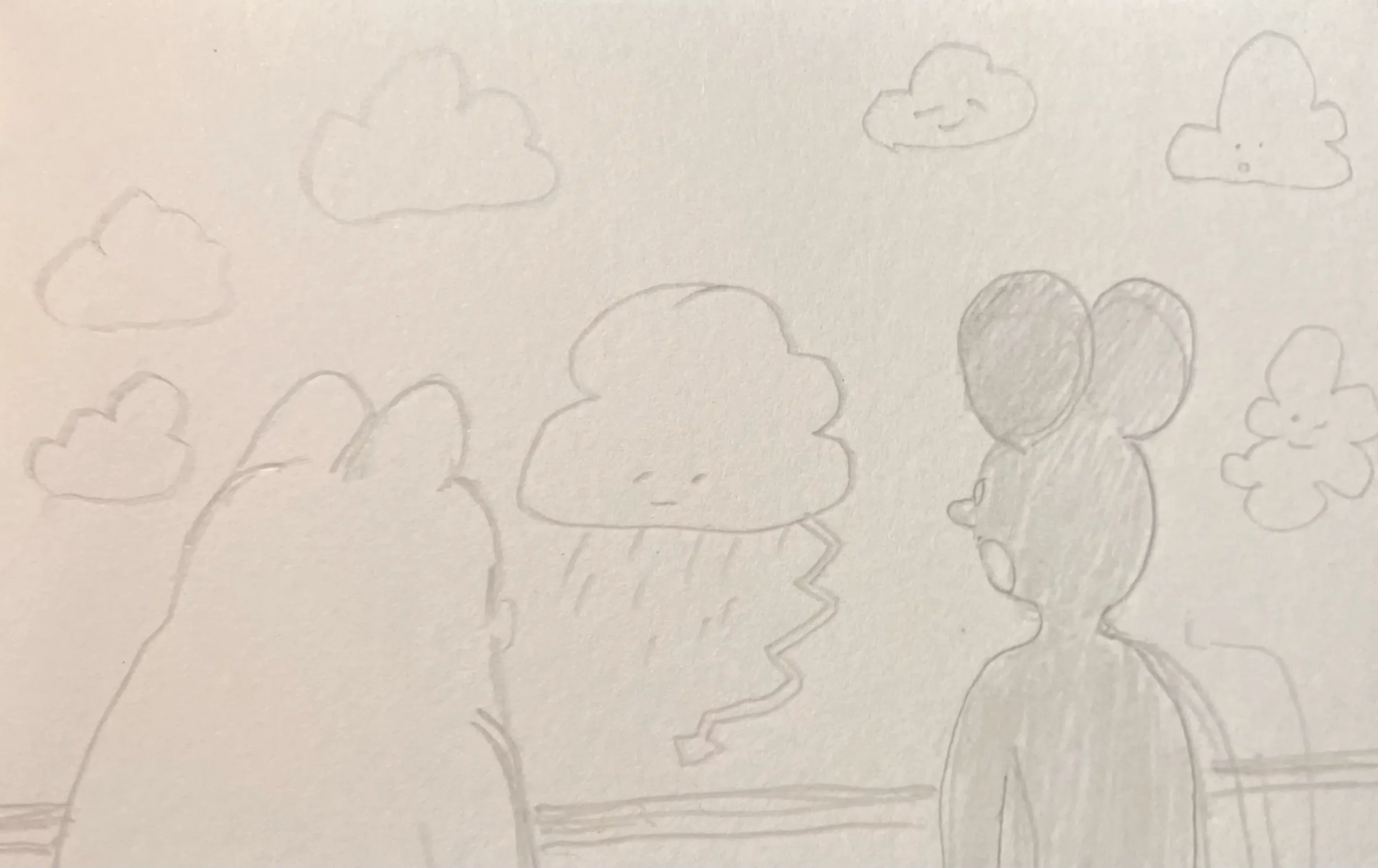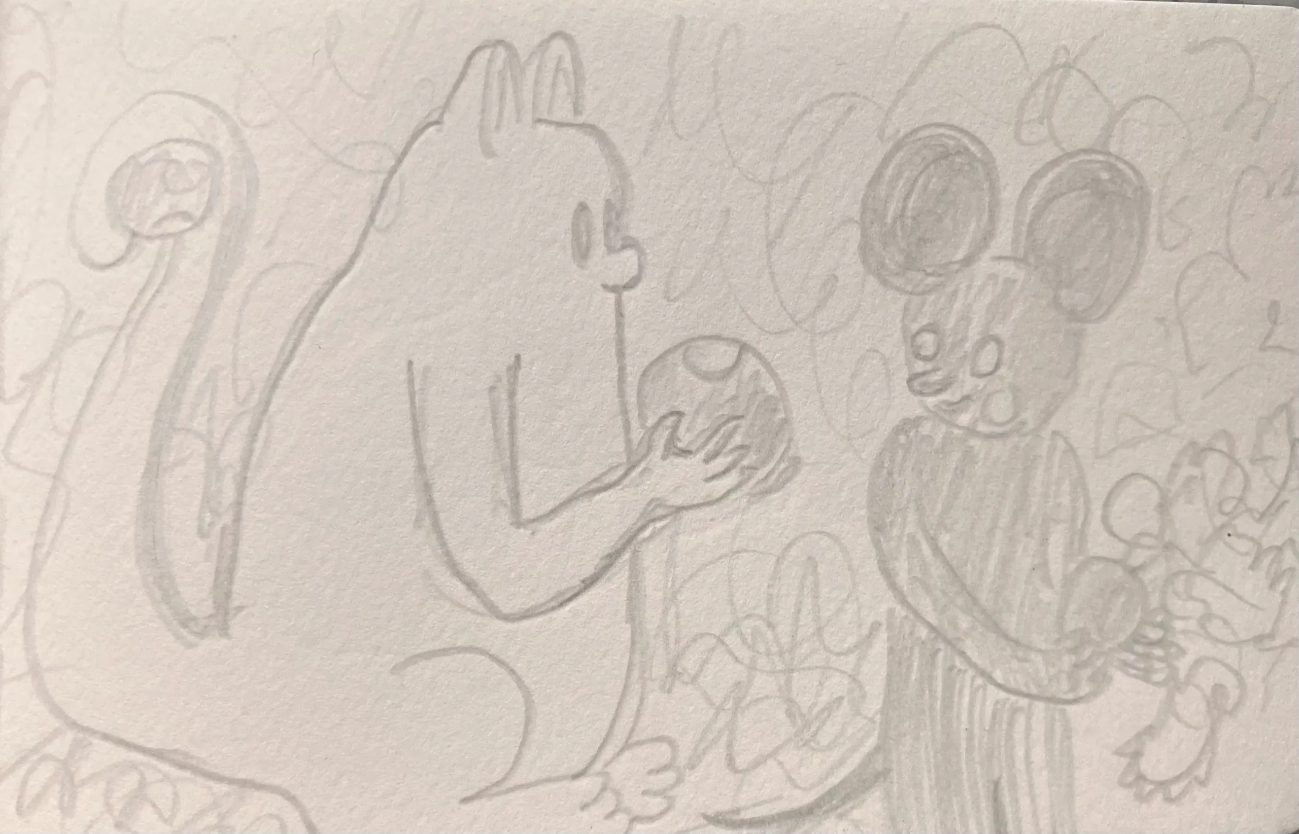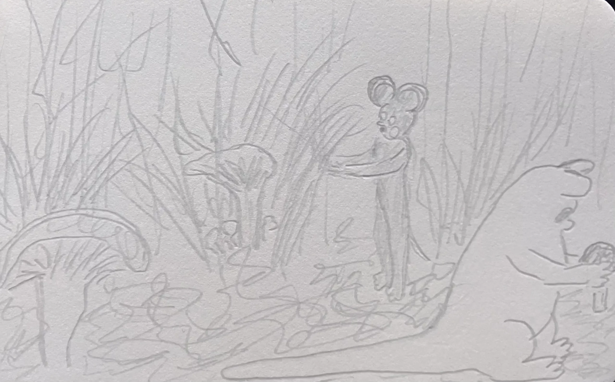 Little Mume is a drawn version of a diary. Fable creatures experience parts of my everyday life vicariously within it. The series began as a daily drawing exercise in 2020 and now comprises more than a thousand pages.
