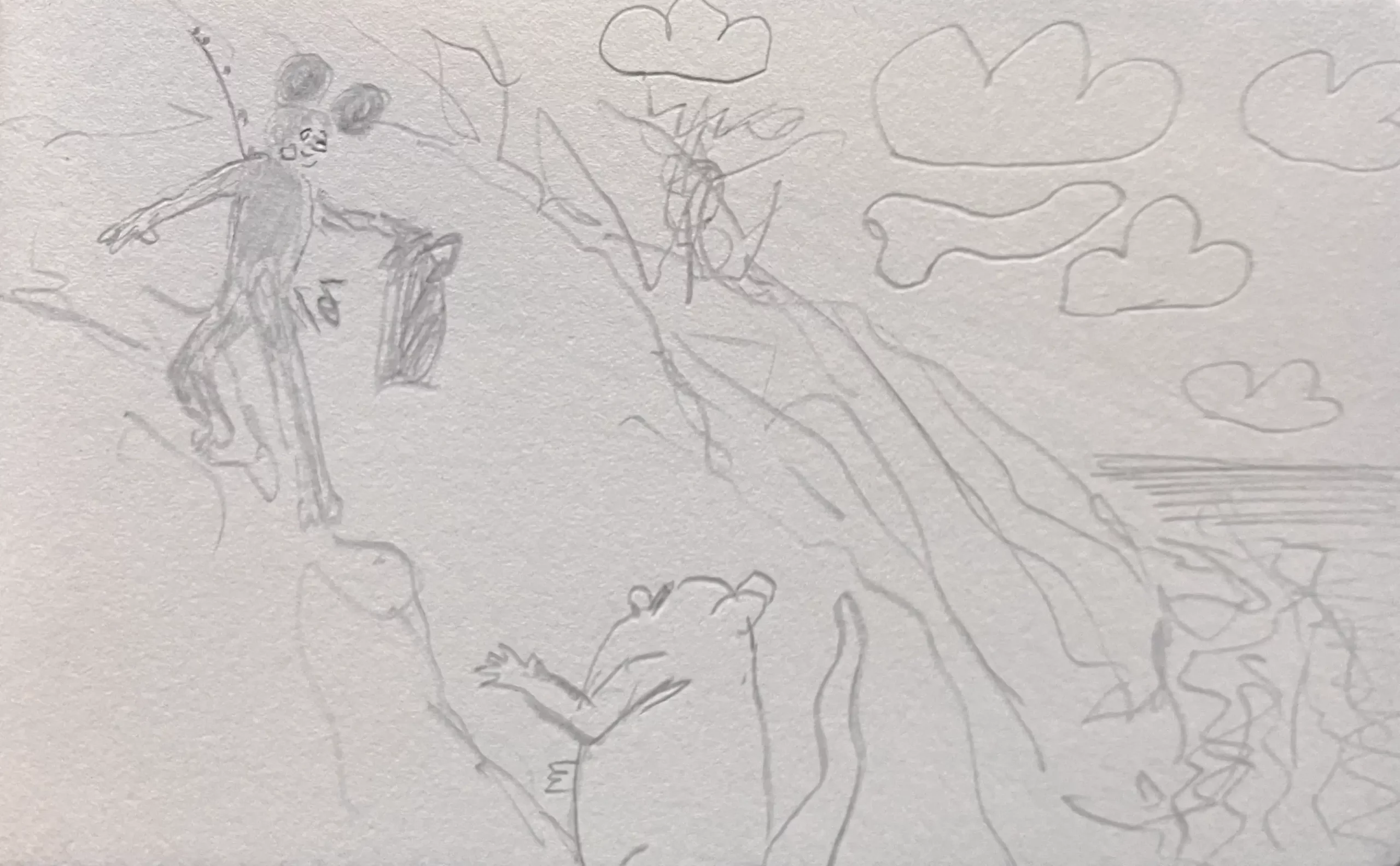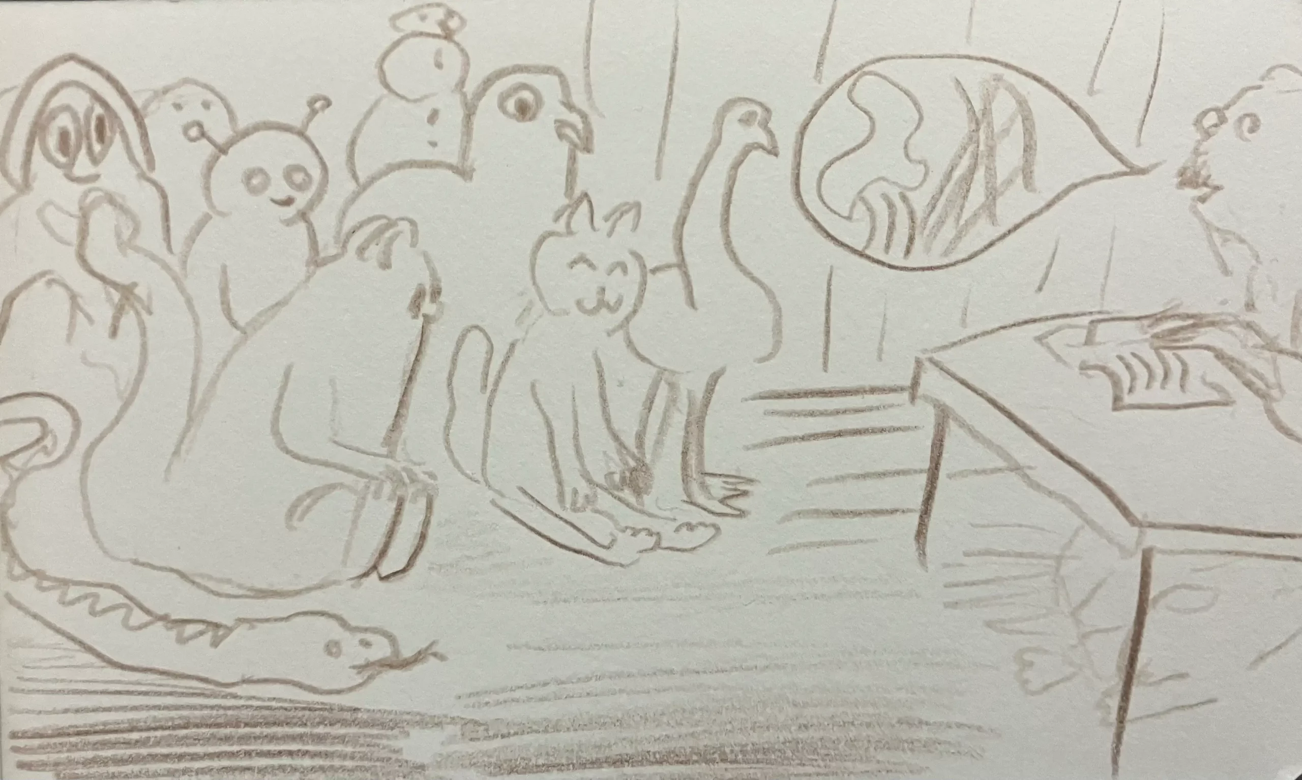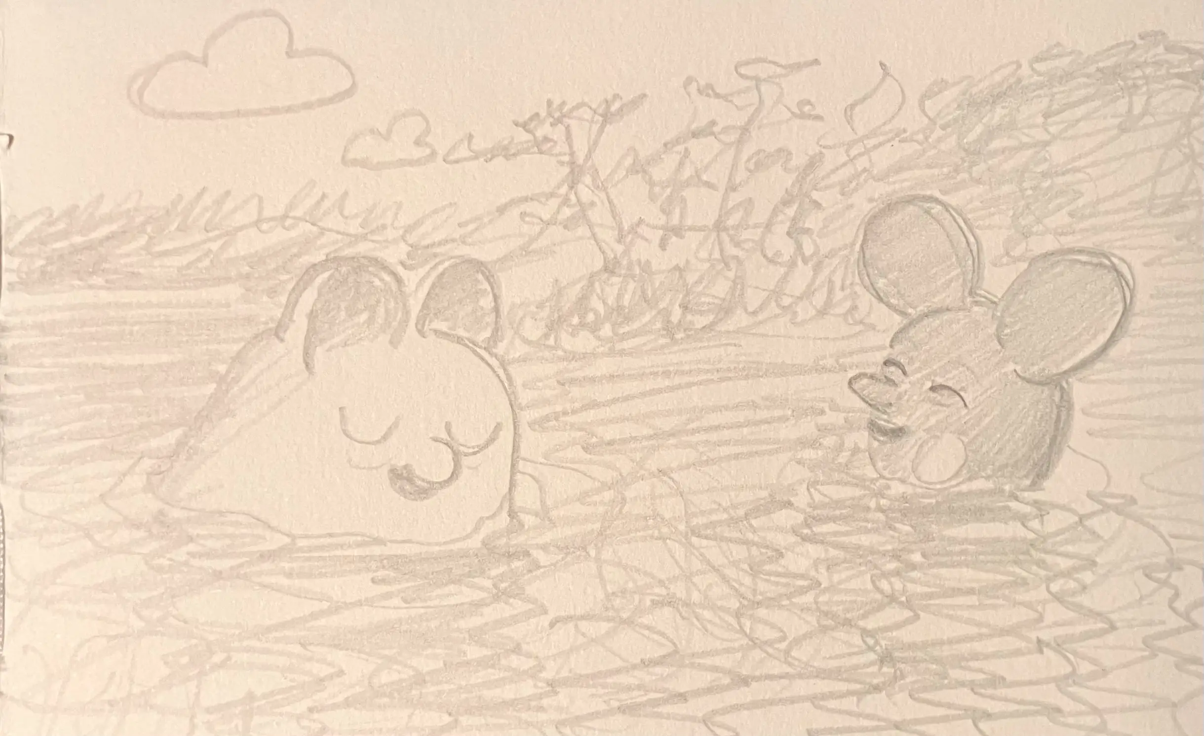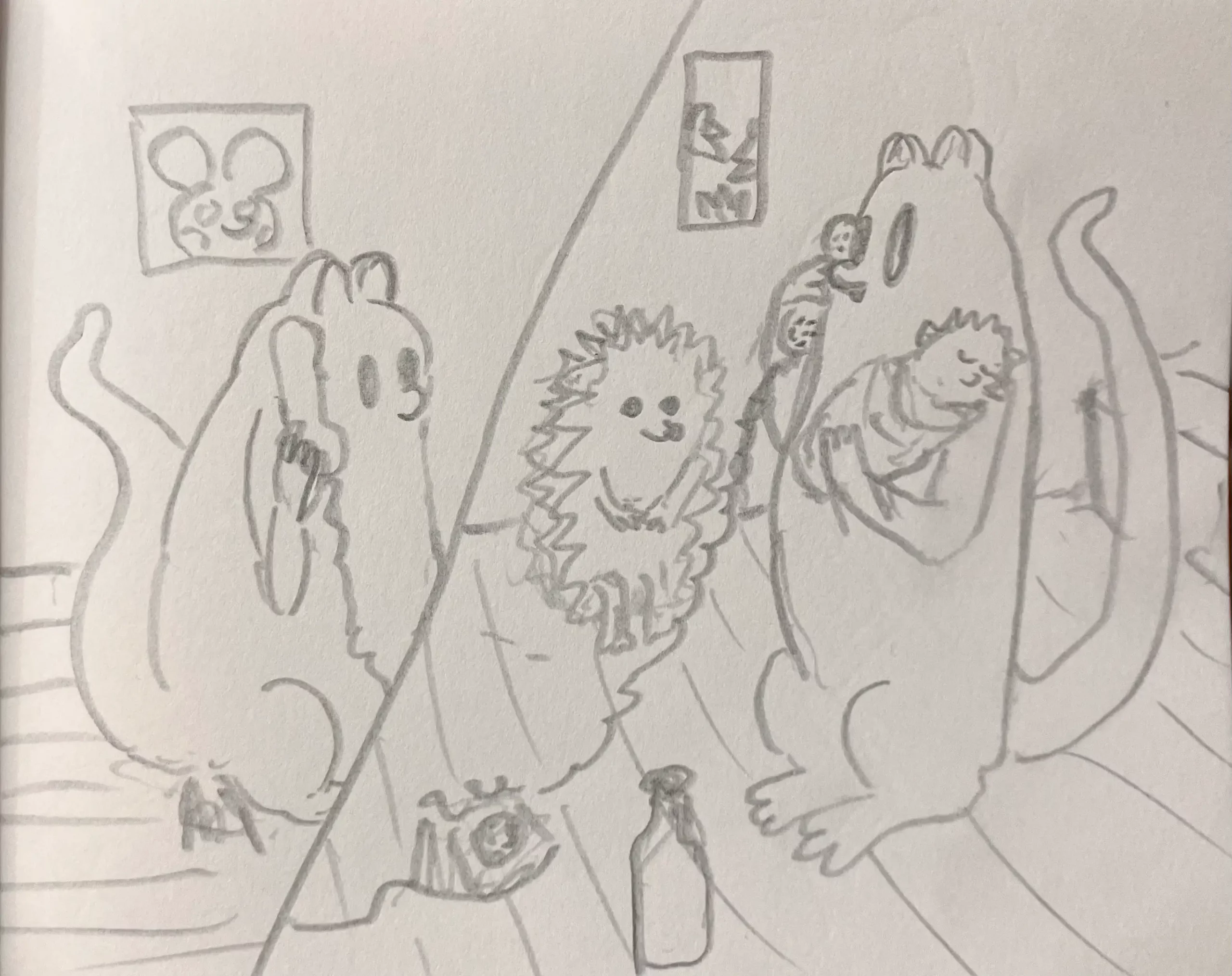 Little Mume is a drawn version of a diary. Fable creatures experience parts of my everyday life vicariously within it. The series began as a daily drawing exercise in 2020 and now comprises more than a thousand pages.