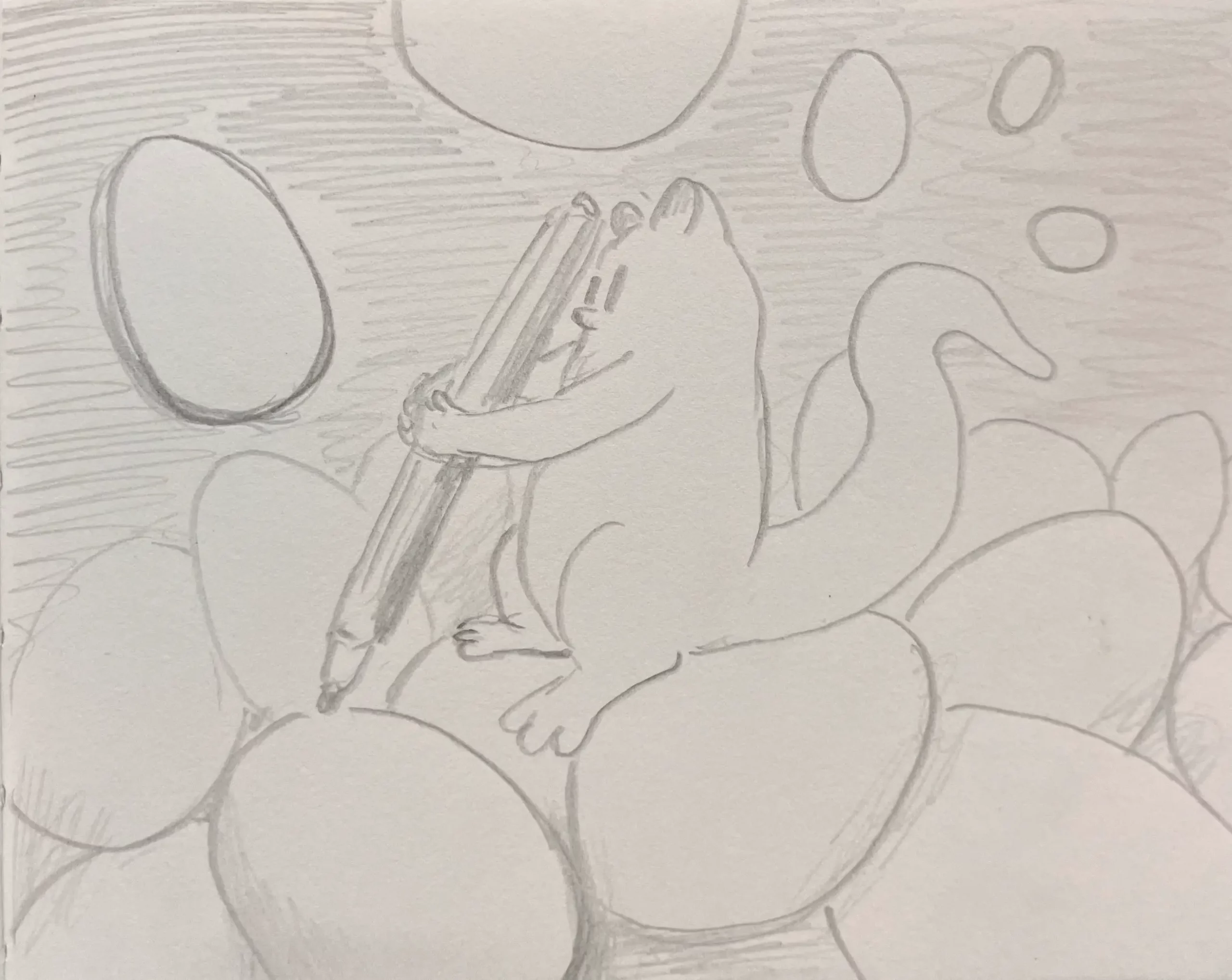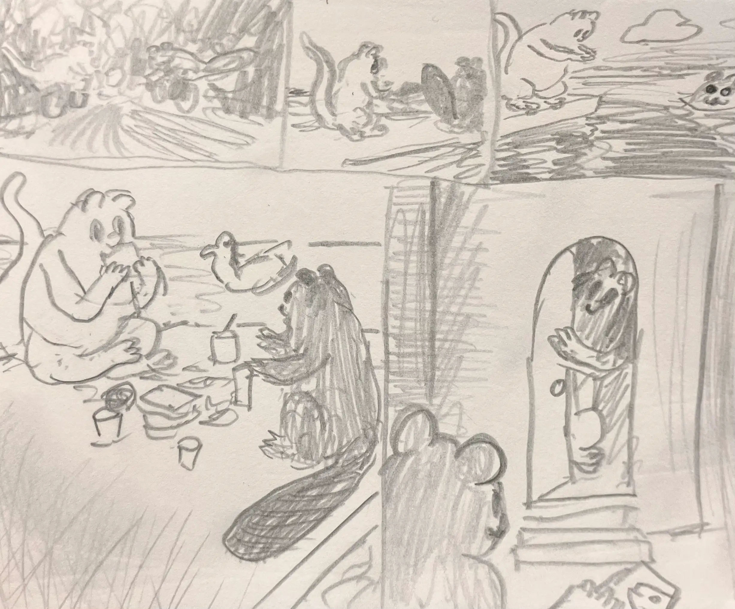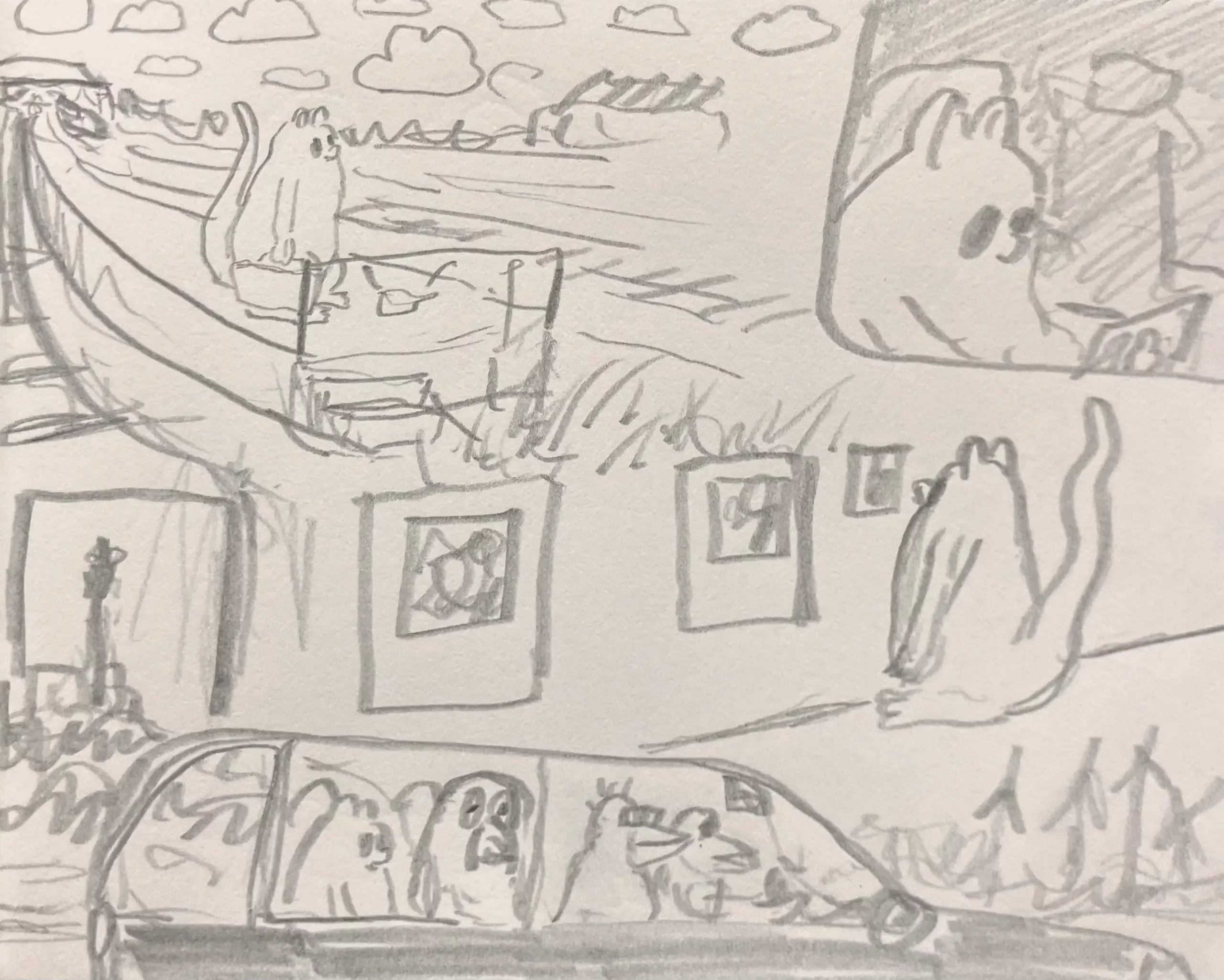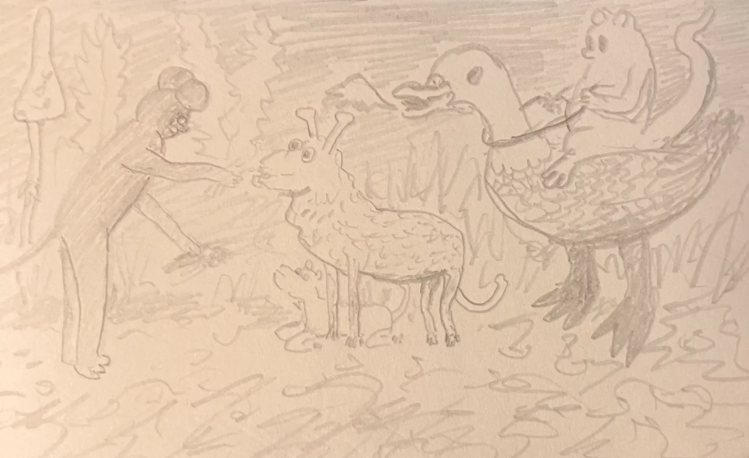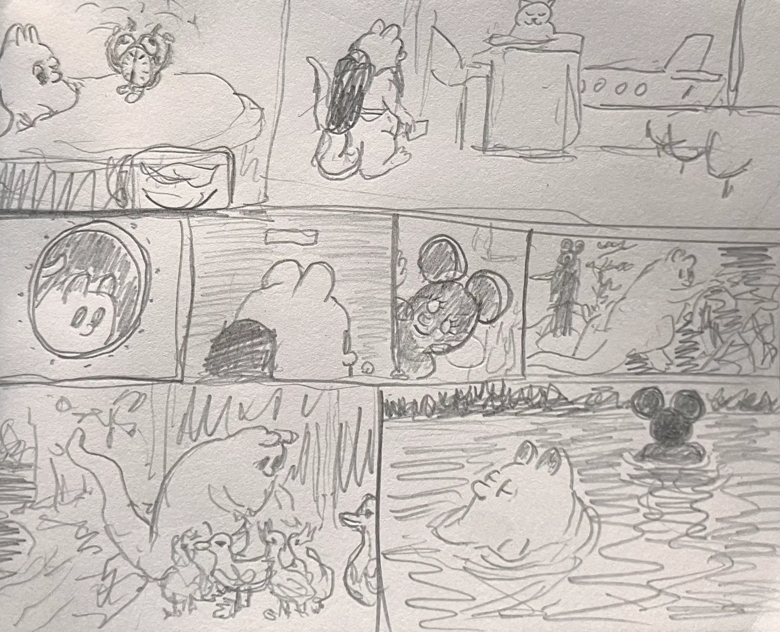 Little Mume is a drawn version of a diary. Fable creatures experience parts of my everyday life vicariously within it. The series began as a daily drawing exercise in 2020 and now comprises more than a thousand pages.