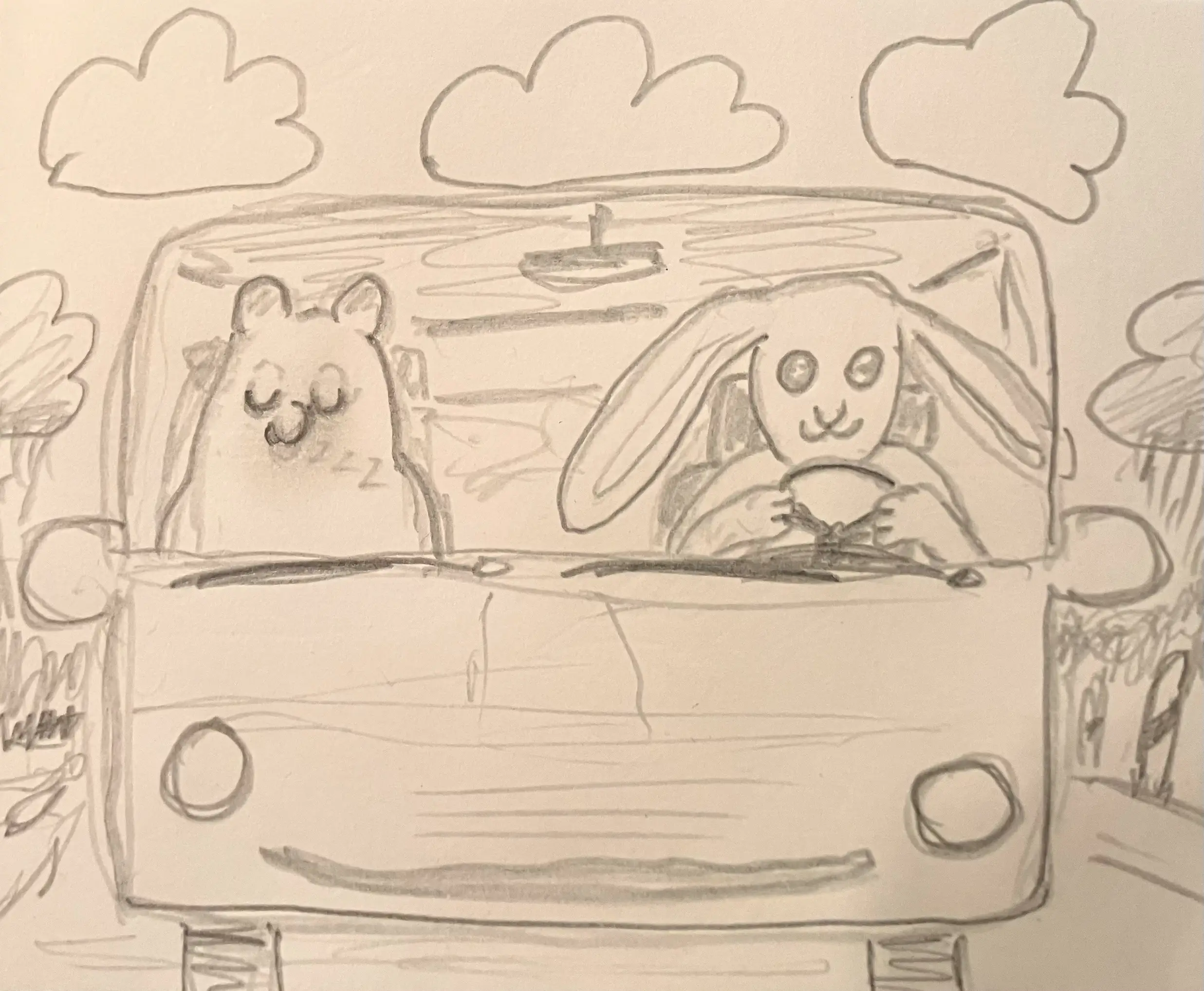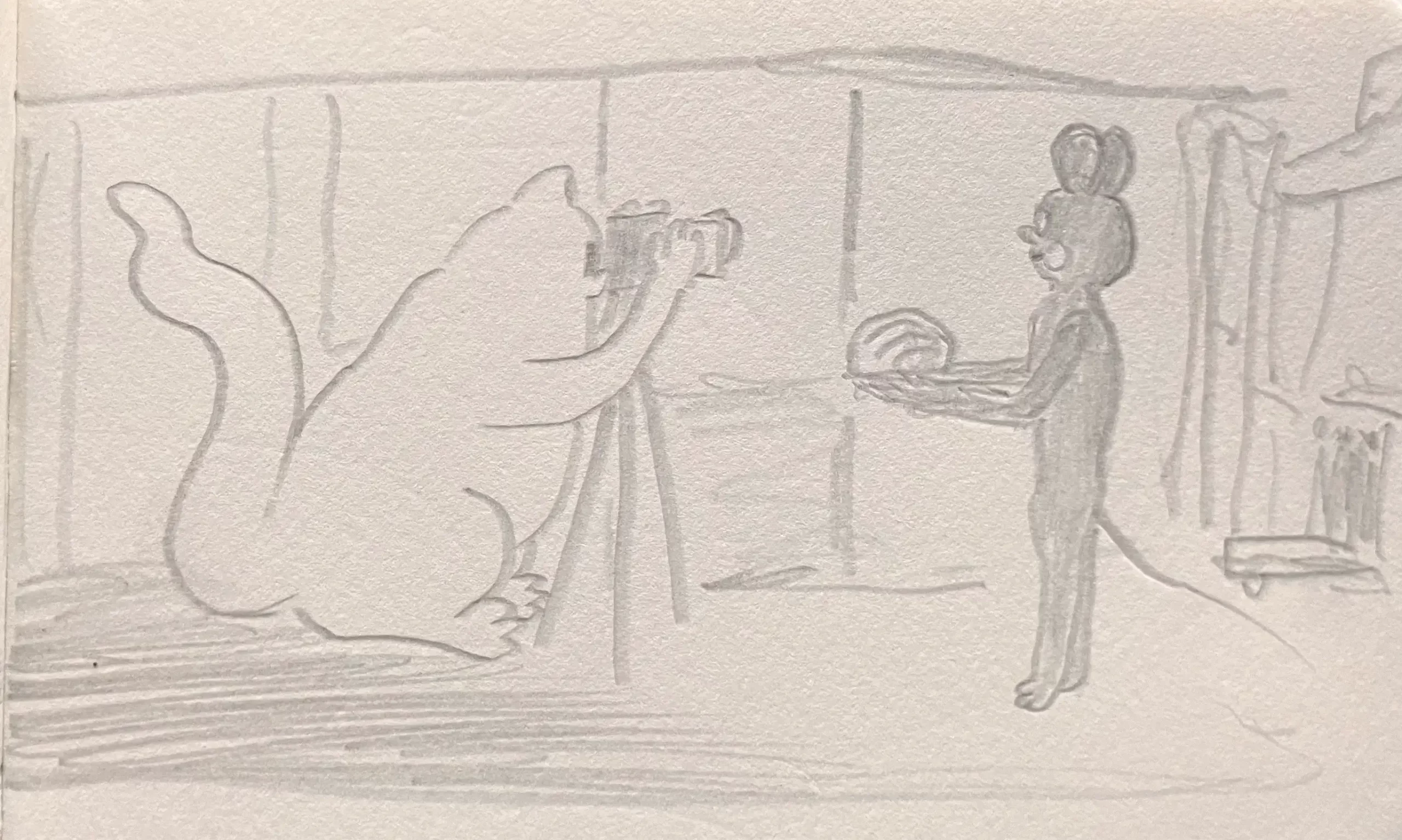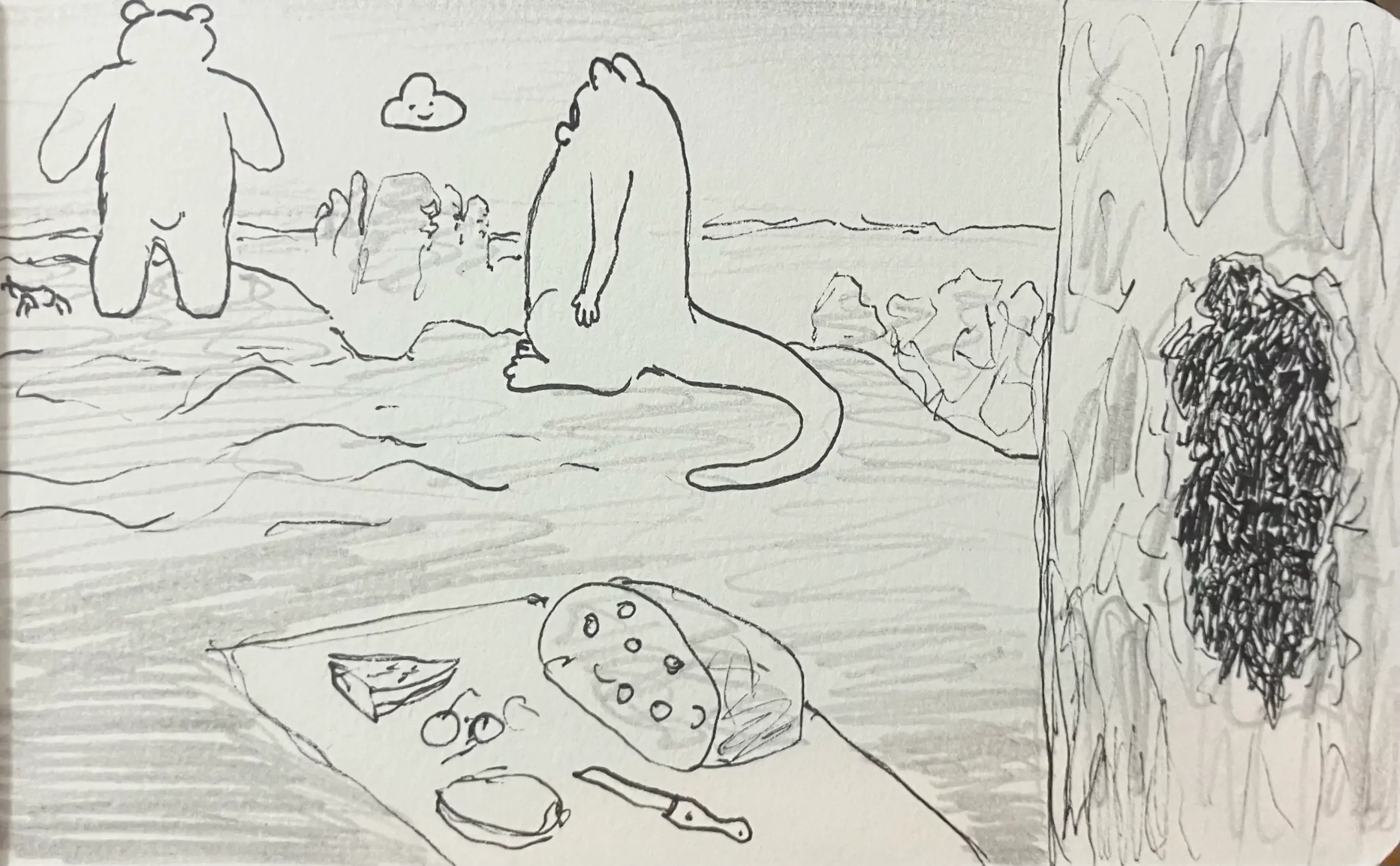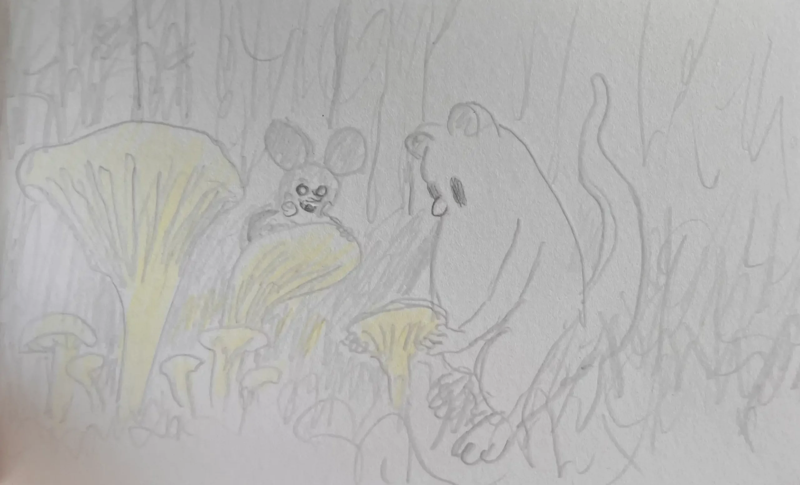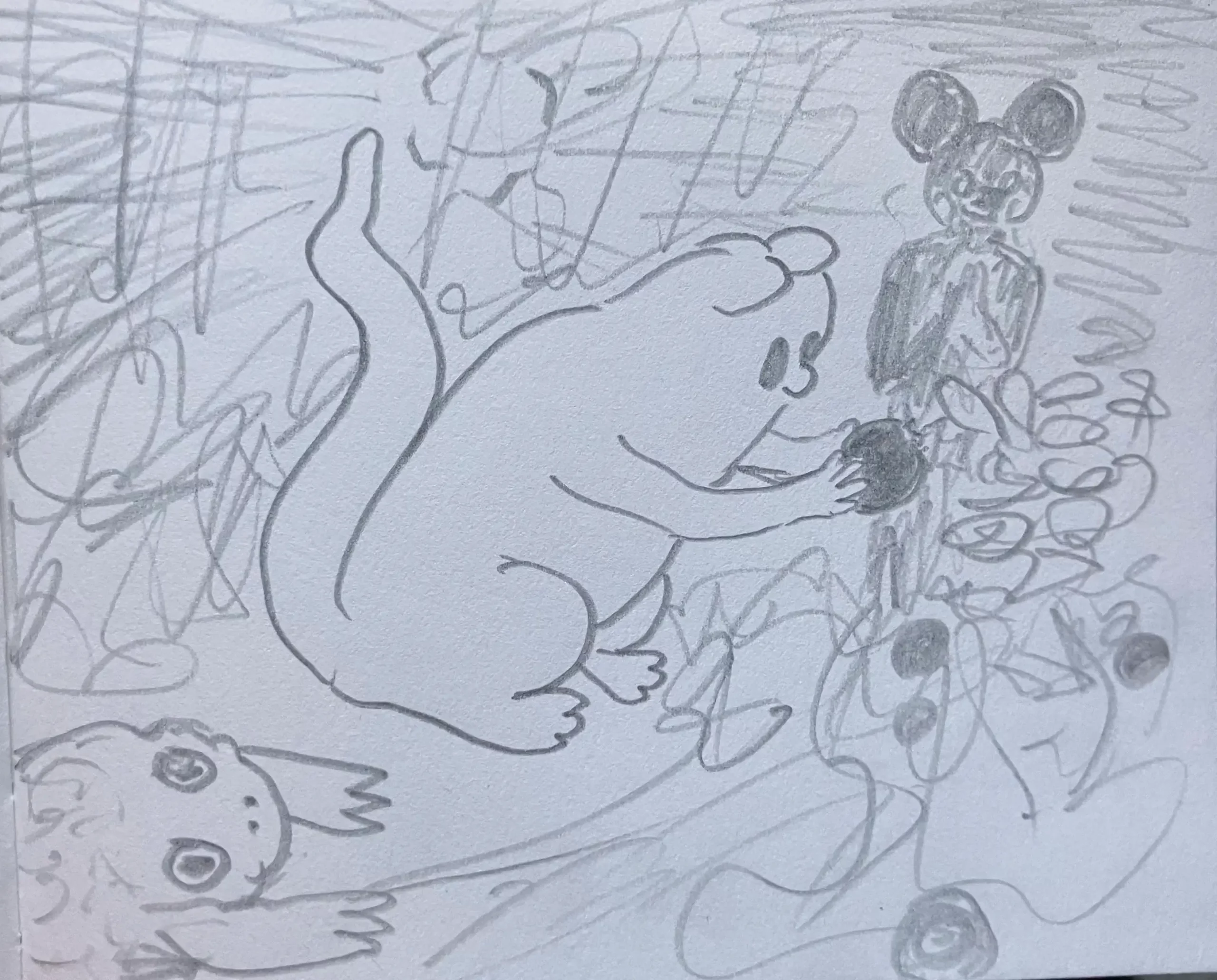 Little Mume is a drawn version of a diary. Fable creatures experience parts of my everyday life vicariously within it. The series began as a daily drawing exercise in 2020 and now comprises more than a thousand pages.