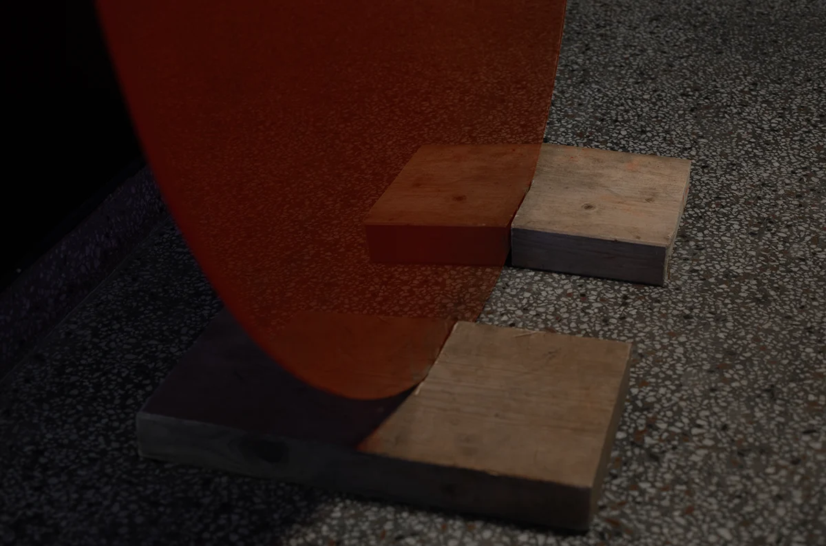 Die rote Glasfläche von „Two Bodies“ vollzieht eine leise Richtigstellung – kein moralischer Widerspruch, sondern ein physischer Ausgleich.